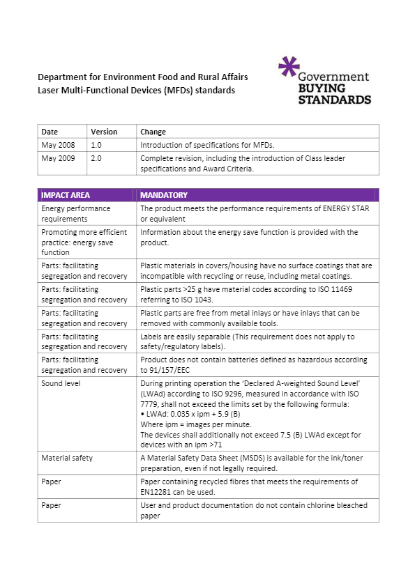 Government Buying Standards Laser Multi-Functional Devices Standards