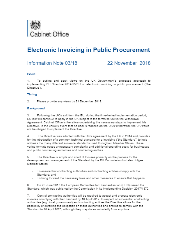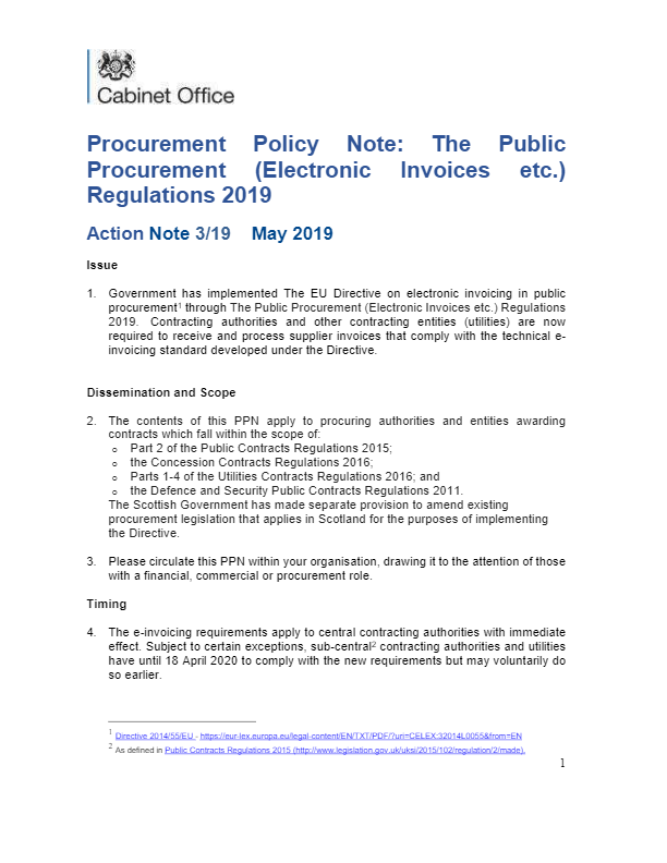 Procurement Policy Notes – Electronic Invoicing in Public Procurement