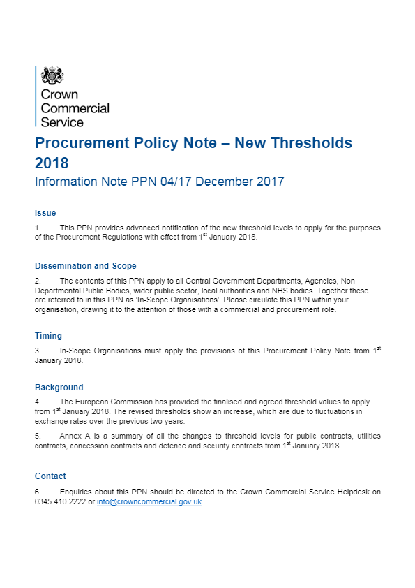 Procurement Policy Note – New Thresholds 2018