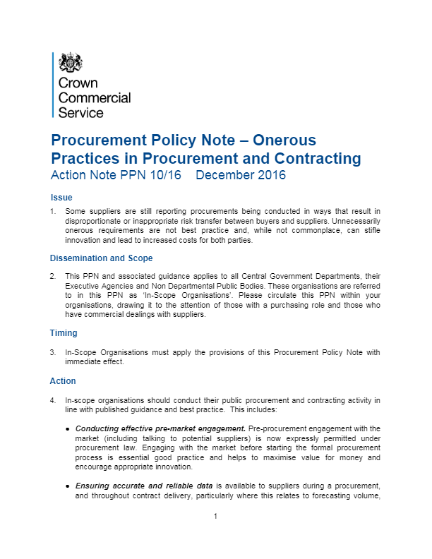 Procurement Policy Note – Onerous Practices in Procurement and Contracting
