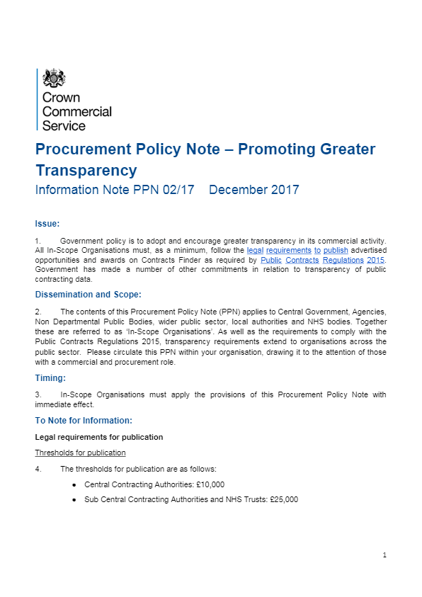Procurement Policy Note – Promoting Greater Transparency