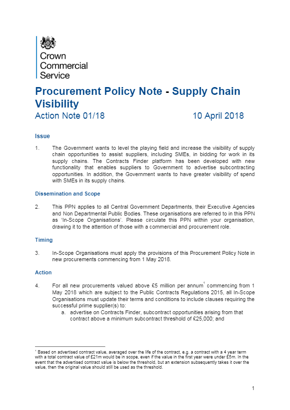Procurement Policy Note – Supply Chain Visibility