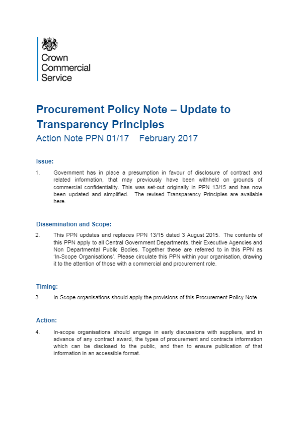 Procurement Policy Note – Update to Transparency Principles